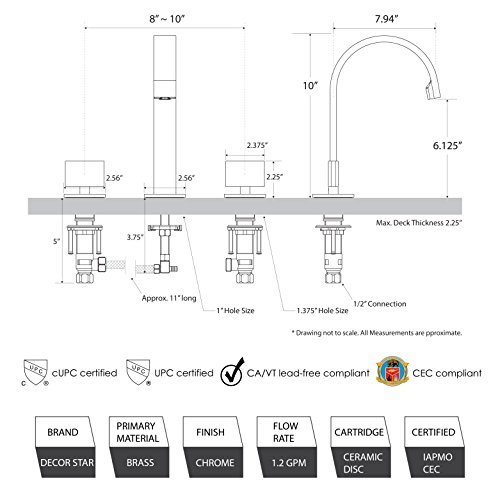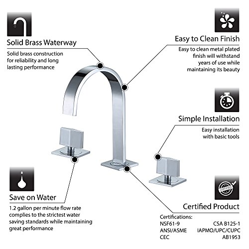 Decor Star WPC05-TC Contemporary Bathroom Vanity Sink Widespread Lavatory Faucet UPC cUPC NSF AB 1953 Lead Free Chrome