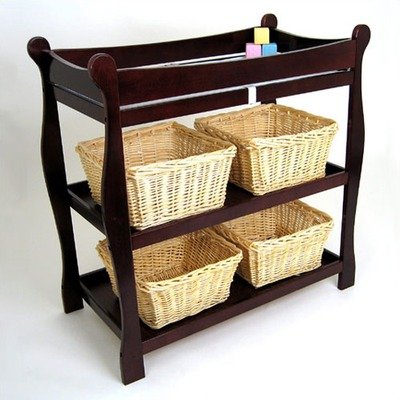 Studio : Badger Basket Publisher : Badger Basket Binding : Baby Product Product Description 02232/0005X Features: -Made of quality hardwood.-Safety rails enclose all four sides.-Metal support bar beneath changing surface for additional stability and safety.-Wipe clean with mild soap and damp cloth.-4 Natural rattan wicker baskets with removable fabric liners.-Basket liners available in white waffle, sage gingham, lilac gingham, navy gingham, and yellow gingham. Includes: -Mattress pad included.-Safety strap included.-Illustrated instructions included. Color/Finish: -Non-toxic cherry finish.-Actual colors may vary slightly. Assembly Instructions: -Assembly required. Dimensions: -1.375' Lip around all four edges of shelving to keep items from falling off.-Baskets: 8' H x 15' W x 15' D.-Shelves: 32' W x 17.5' D.-Overall Dimensions: 37.5' H x 37.5' W x 19' D. 0