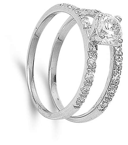 -. Title : Sterling Silver Designer Engagement Ring Wedding Band Bridal Set Sizes 5-10
