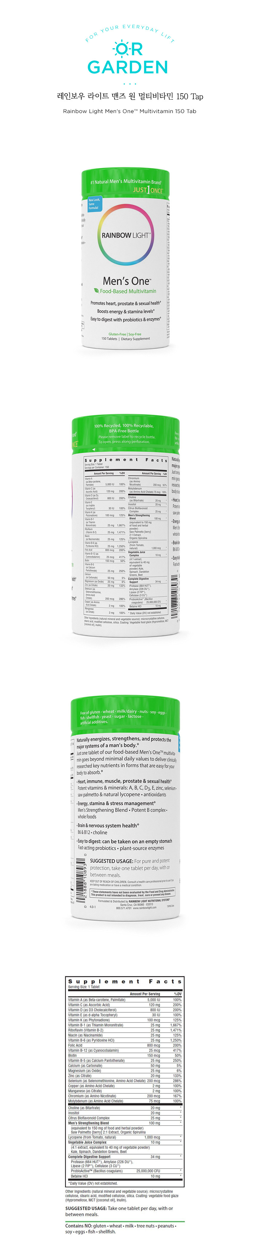 레인보우 라이트 맨즈 원 멀티비타민 150 Tap*건강보조식품은 1회 통관시 6병까지만 통관 가능합니다.