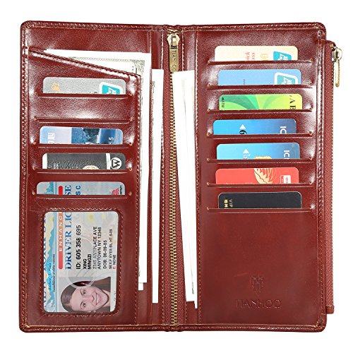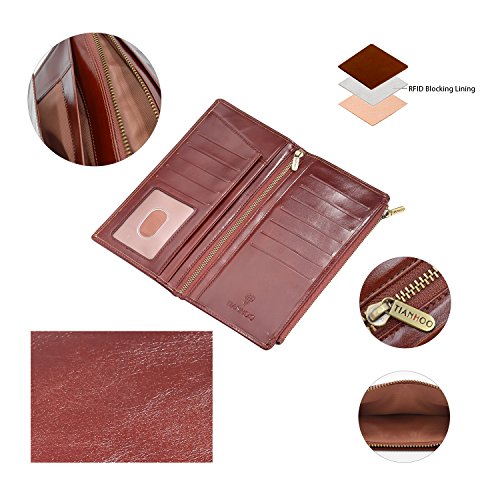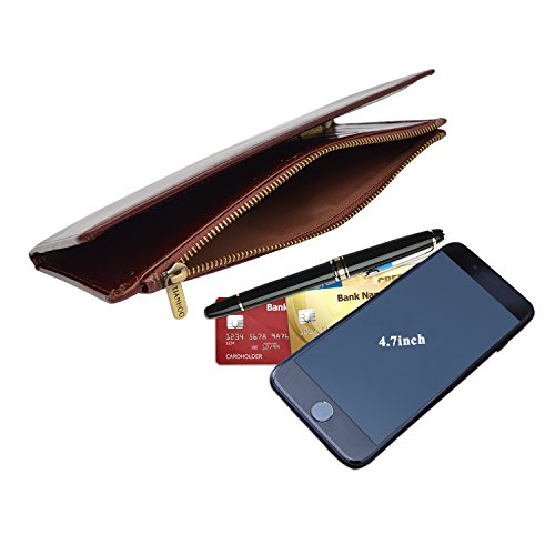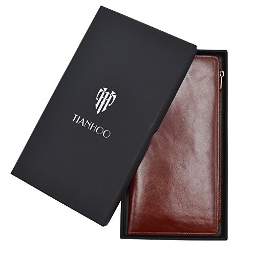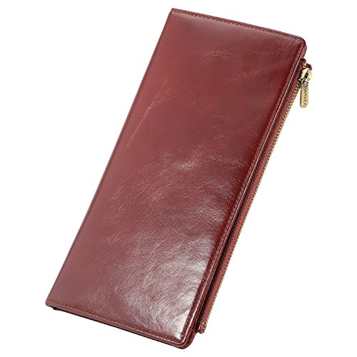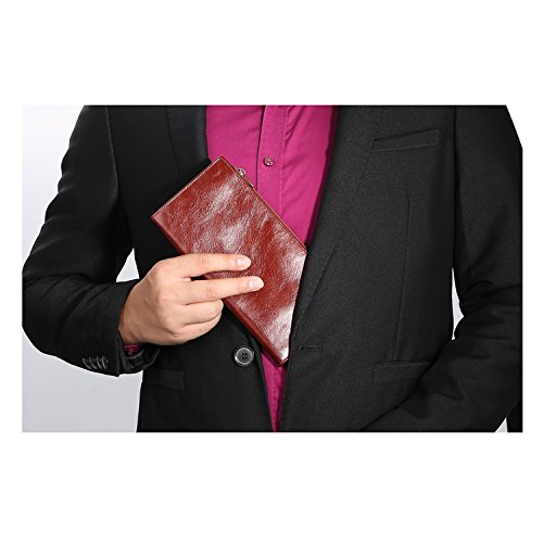 -. Feature : Dimensions:8.05*4.15*0.55 inch. / 100% High quality import genuine Cowhide leather after waxing process with high quality copper zip,which makes the wallet more luxurious. / Capacity: 11 card slots,1 ID window, 2 long slots for cash, 1 check slot,1 zipper pocket for phone,the big zipper pocket design to take many things such as bills,check,note paper and so on. / Wallets are handmade by professional artisans slim and lightweight design. And it have RFID blocking fuction which are lined with enhanced RFID blocking layer to prevent unwanted RFID scans / Elegant, vintage and luxurious wallet,which is perfect for walk around,travel and business. And it is also the best gift for your friends,your family.