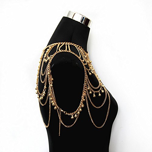 -. Title : JoJo&Lin Gold Tone Harness Multilayer Body Chain with Bells Necklace Love Rocks Shoulder Drape