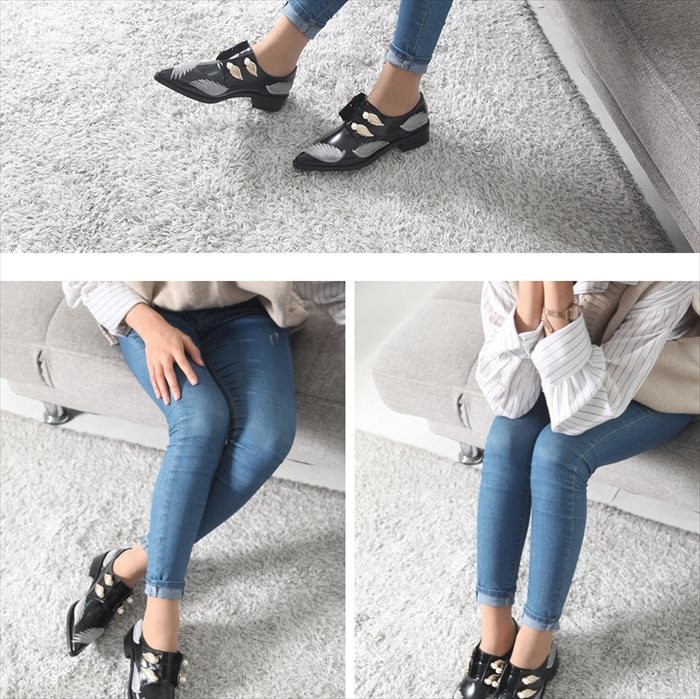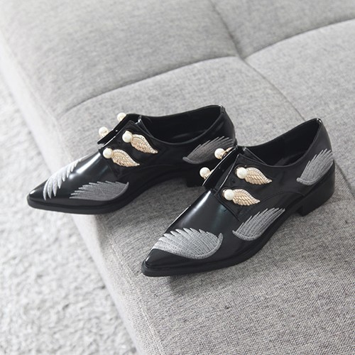商品名:ローファー レディース ポインテッドトゥ 刺繍 2017 秋冬 ファッション 靴 婦人靴