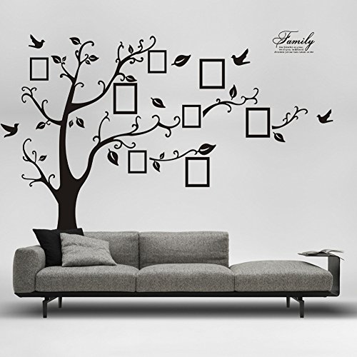 Itechzhu wall sticker, Memory Family Tree Photo 1set DIY Decor Home Stickers Removable wall sticker for Living Room (30cm90cm4, black)