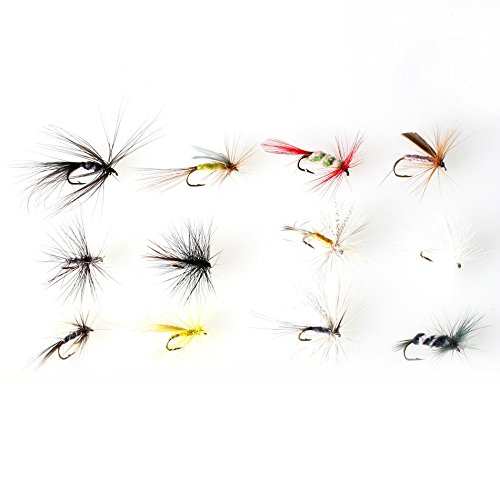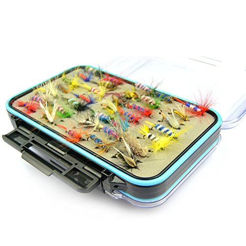 Isafish 64pcs Dry Flies Bass Salmon Trouts Flies Nymph and Streamer Fly Fishing flies Kit Waterproof Fly Box for Trout Fly Fishing Flies (same with picture)