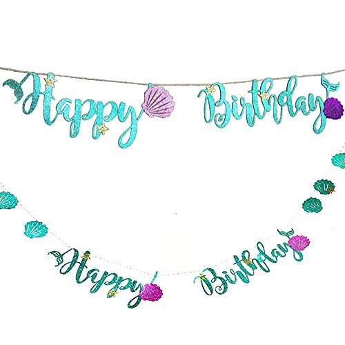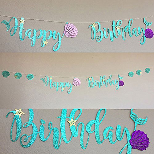 (Jiahai)/Stationery Party Supplies/Party Supplies/DIRECT FROM USA/Blue Mermaid Happy Birthday Bunting Banner Decoration for Birthday Party Supplies