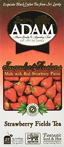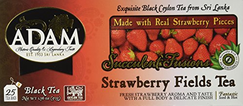 -. Feature : 6 pack of premium strawberry flavored Ceylon black tea, each of the 6 boxes contains 25 individually wrapped teabags (150 teabags total) / Made with 100 percent pure Ceylon tea, real strawberry fruit pieces, and natural strawberry flavor / True double chamber teabags to enhance and excel orate infusion / Blended and packed at origin (Sri Lanka) to seal in freshness / Each teabag makes 12-16 ounce of iced tea and 6-8 ounce of hot tea