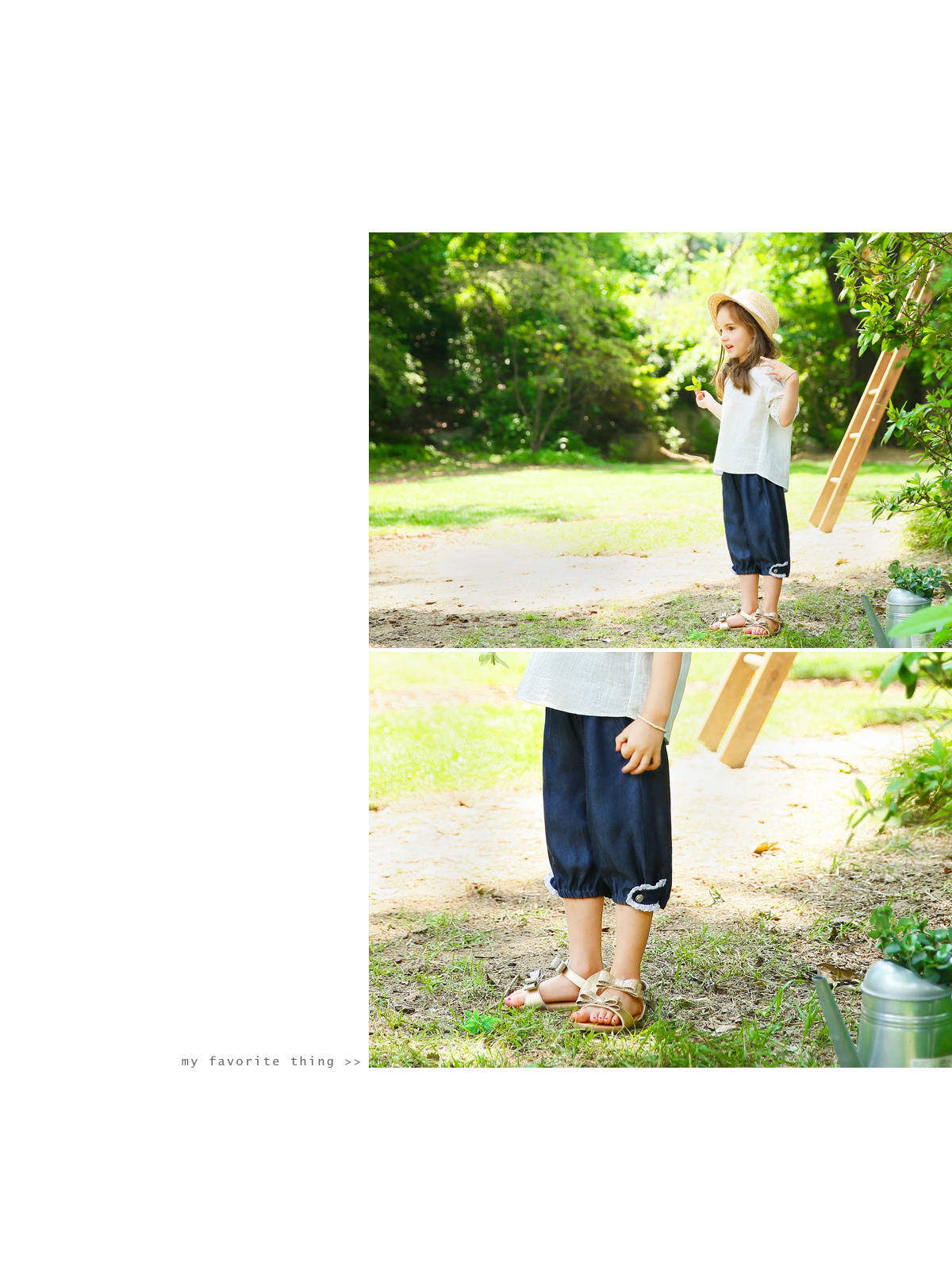 캐주얼한 느낌과 귀여운 디테일이 잘 어울러진 팬츠에요^^ 얇은 데님 원단으로 제작되어서 여름에 간편하게 입기 좋구요~ 팬츠 밑단에 밴드 셔링으로 편하게 라인을 잡아주고 있답니다~ 옆부분에 단추와 레이스 소재를 더해주어 깜찍한 포인트를 주었어요. 앞부분에 슬림한 주머니와 뒷부분에 레이스와 단추가 있어 귀여우면서도 아기자기함을 느낄 수 있답니다. 다양한 상의 아이템과 조화롭게 잘 어우러지는 베스트 팬츠! 시즌 반드시 소장해야 할 아이템이 되어 드릴거에요:) ?