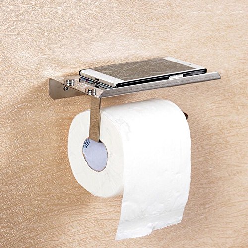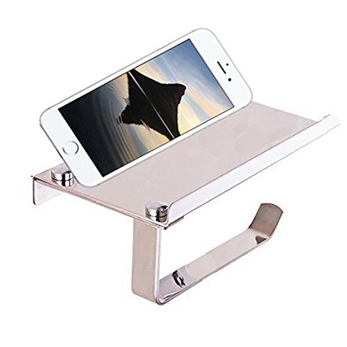 Toilet Paper Holder,SUS304 Stainless Steel Bathroom Paper Tissue Holder JYfeel Toilet Roll Holder with Mobile Phone Storage Shelf Rack Wall Mounted Roll Dispenser for Bathroom