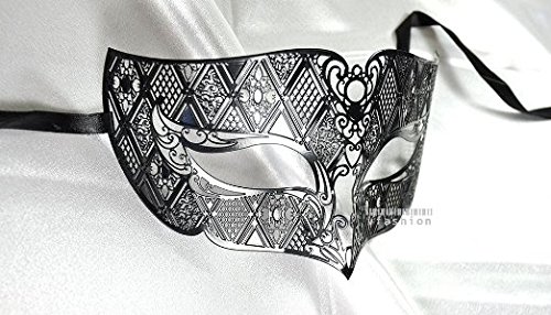 -. Feature : Elegantly Designed Venetian Metal Laser Cut Masquerade Party Mask / Eco-Friendly Lightweight Material Used / One Size Fit All / Color: Gold Black / Satisfaction Guarantee!
