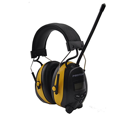 -. Feature : ►BUILT-IN-RADIO AND MP3 COMPATIBLE: Built-in digital FM/AM radio ear defender come with standard stereo jack cable for phone, mp3 player, convert surrounding noises into your favorite radio program or music, say goodbye to boring and harmful noise from now on. / ►REDUCE THE NOISE AROUND YOU: The ear protection safety muffs can not only be used as shooters ear muffs, but also great for hunting, indoor gun range, racing, reading, concert, studying and operating machinery to protect hearing, especially suitable for work in construction and landscaping work. / ►COMFORTABLE WEARING AND ADJUSTABLE HEADBAND: Equipped with double layer soft foam and adjustable headband, this ear protection safety earmuff fits all head sizes for both adults and children, padded headband and well-sealed ear cups keeps your ears comfortable even if wear it for hours. / ►PRESET RADIO CHANNELS AND DIGITAL DISPLAY: Protear radio ear defender can not only scan radio stations frequency automatically but also preset and memory up to 8 channels, so that you can choose your favorite radio program easily. Digital display can show time, AM/FM frequency, battery status. / ►NRR SOUND TECHNOLOGY, ANSI S3.19 TESTED & CERTIFIED: Noise reduction rating (NRR) of 25(dB), conform to American Standard, your satisfaction is guaranteed or your money back. For more great product please search "Protear" on Amazon.