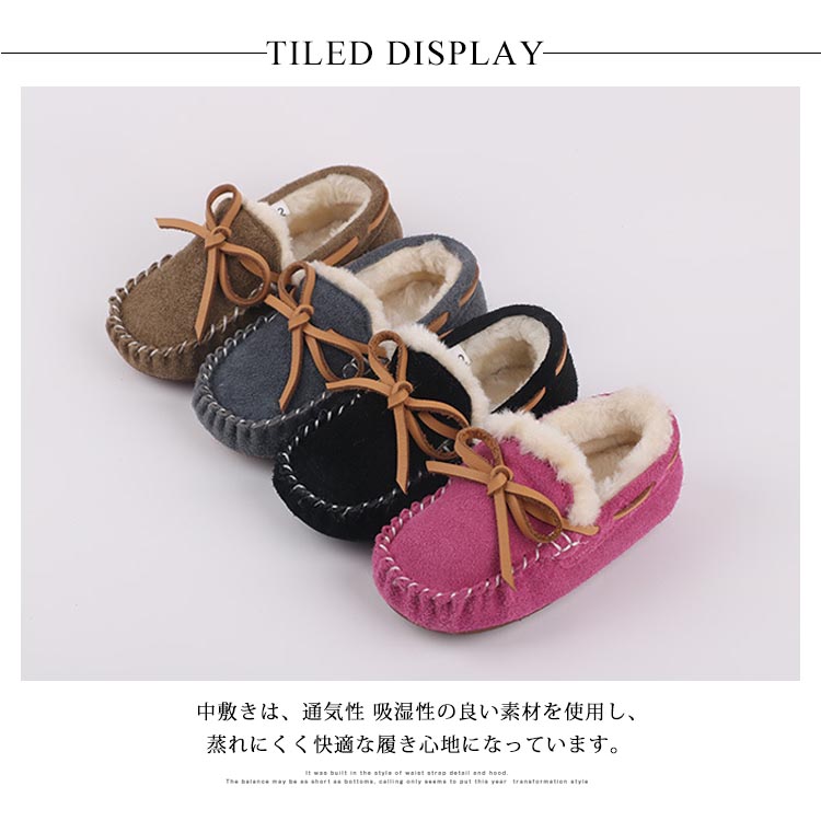 | 可愛く上品な色合いの子供用モカシンです。中敷きは、通気性 吸湿性の良い素材を使用し、蒸れにくく快適な履き心地になっています。 ソールは滑りにくく、着地の衝撃を和らげる歩きやすい設計。オシャレで小さいお子様もお出かけが楽しくなります。 | |
