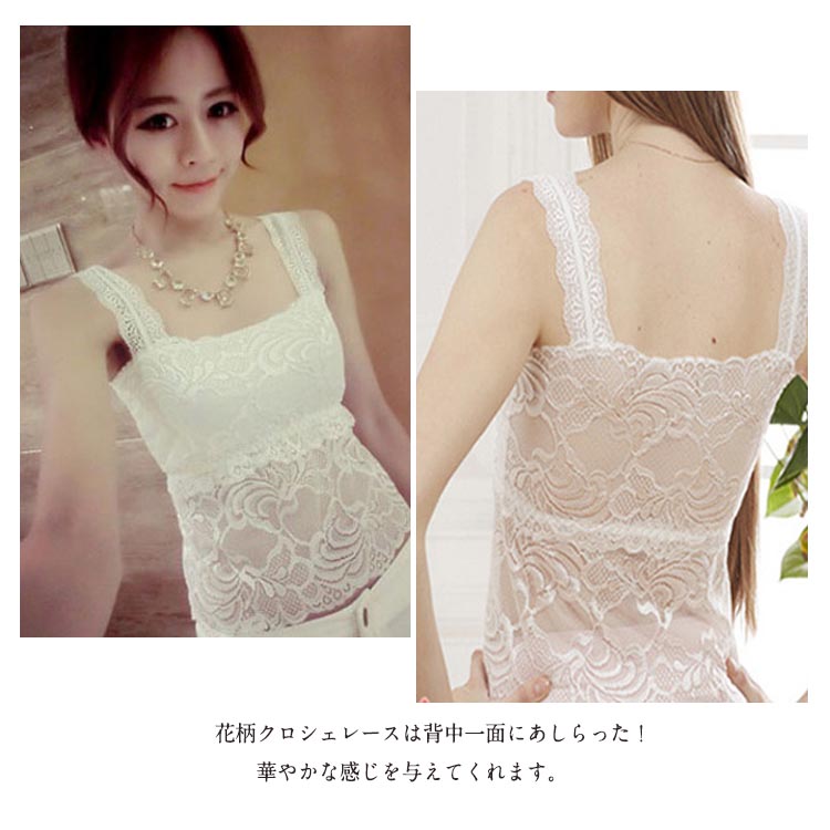| 優しくフィットし、心地良く包み込んでくれセクシーなシンナー。透け感のあるデコルテでスッキリとした印象に♪花柄クロシェレースは背中一面にあしらった!華やかな感じを与えてくれます。 シンプルなデザインで何とでも合わせやすく♪薄く柔らかい生地はサラッとした肌触りなので、夏でも快適な着心地だ☆流行や年代にとらわれない、花のようなレースをぐるりとあしらって、ぐっと華やかに仕上げました。花柄が豊富で何枚でも日々のコーデに女性らしさを添えてくれるタンクトップ☆コットン配合の柔らかな素材を使用。洗濯を繰り返しても型崩れしにくい!立体感あるレースを使って、360度どこから見ても華やかなデザイン!豊富な花柄展開、ロングタイプとショットタイプが揃って、お好きにどうぞ☆ | |