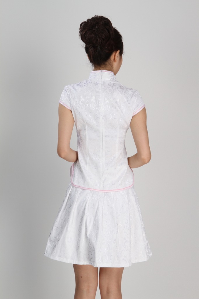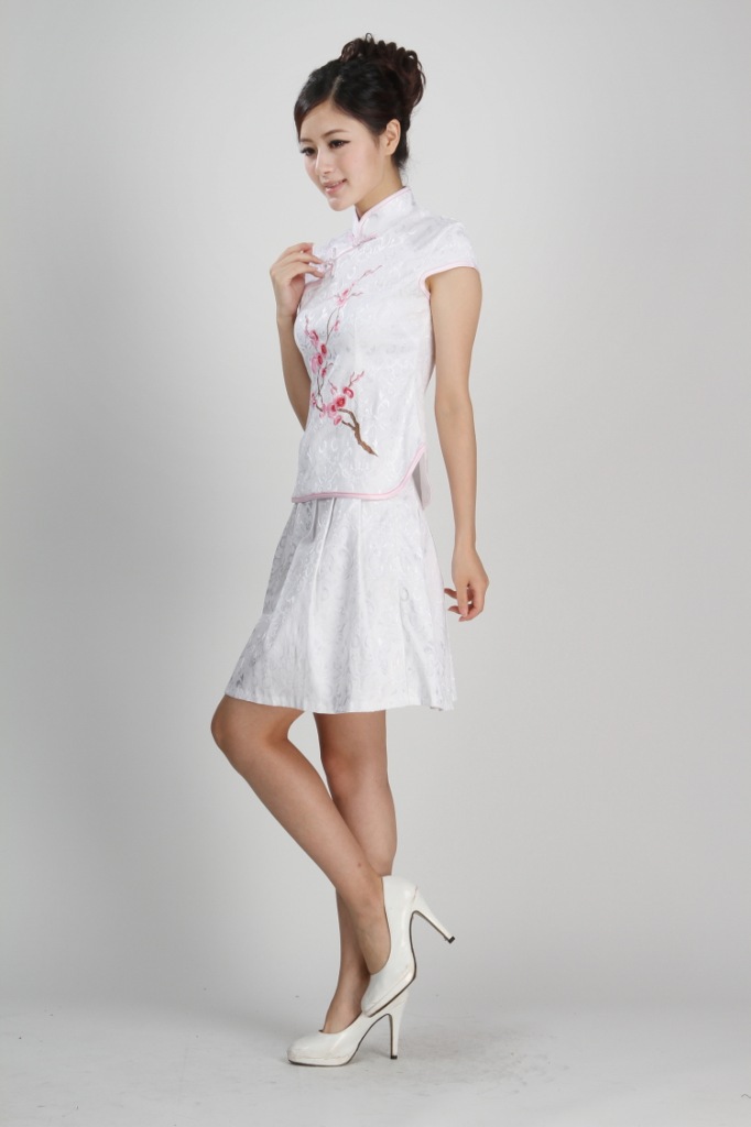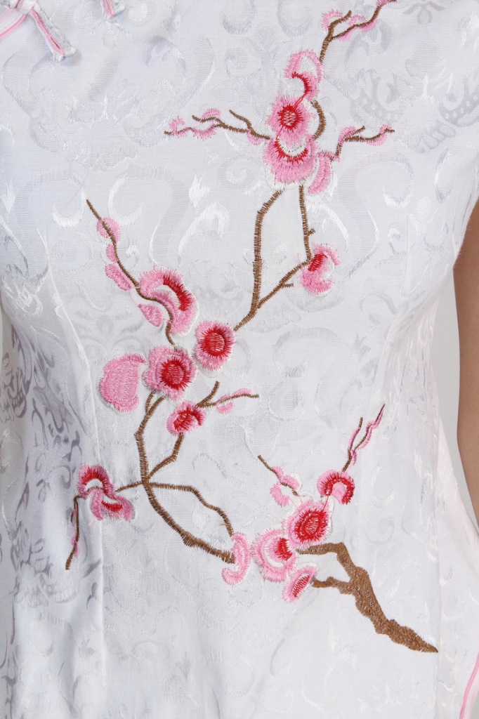 独家原创。时尚优良的中旗袍,秀气大方的小花是这款旗袍的特色之一,非常有旗袍的韵味和雅致。仍然采用时尚天然的提花弹力锦棉面料,面料有提花纹,不缩水不起皱,清爽舒适。也是本款旗袍的亮点之一,特显此款旗袍的高档。取自中国传统艺术,细腻具有中国文化底蕴,非常适合气质大气爽快的白领和校园 MM ,还有马上成为新娘的 MM 也是首先也。