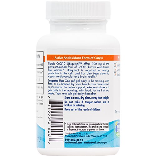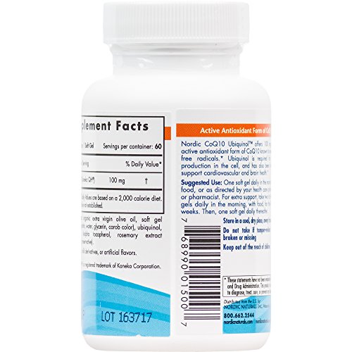 FAT-FRIENDLY NUTRIENT: Nordic CoQ10 Ubiquinol offers the active antioxidant form of coenzyme Q10 (CoQ10) ubiquinol. Each soft gel provides 100 mg of fat-soluble CoQ10 in extra virgin olive oil.