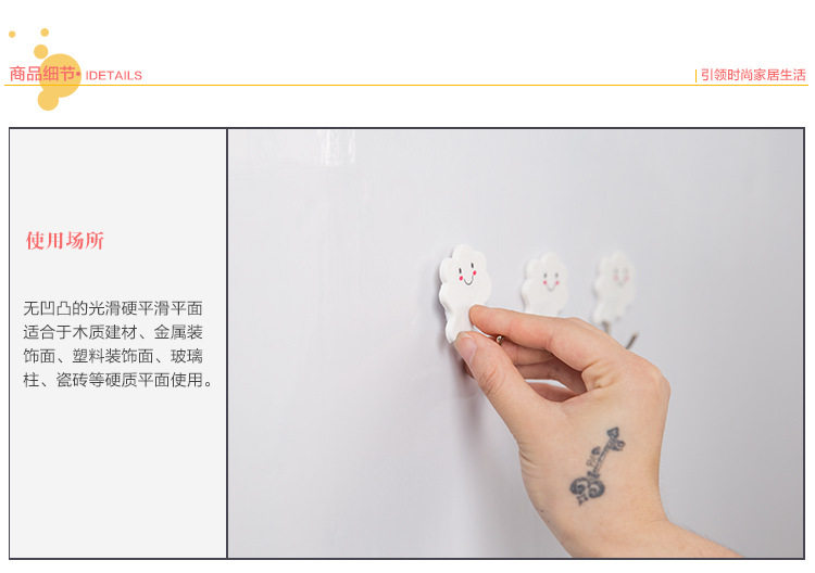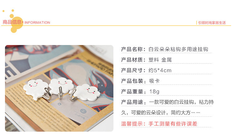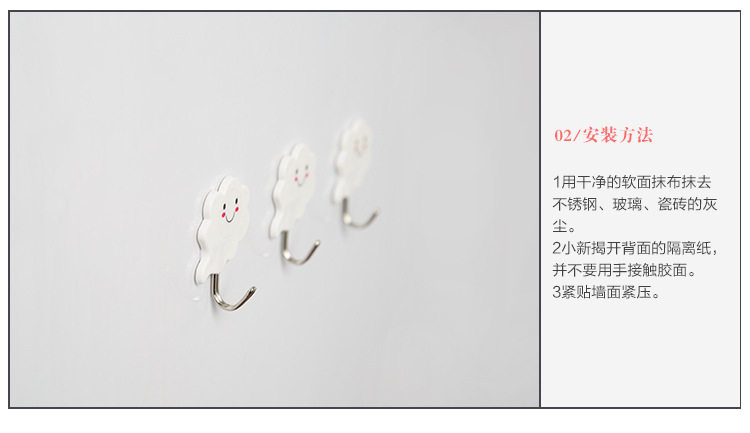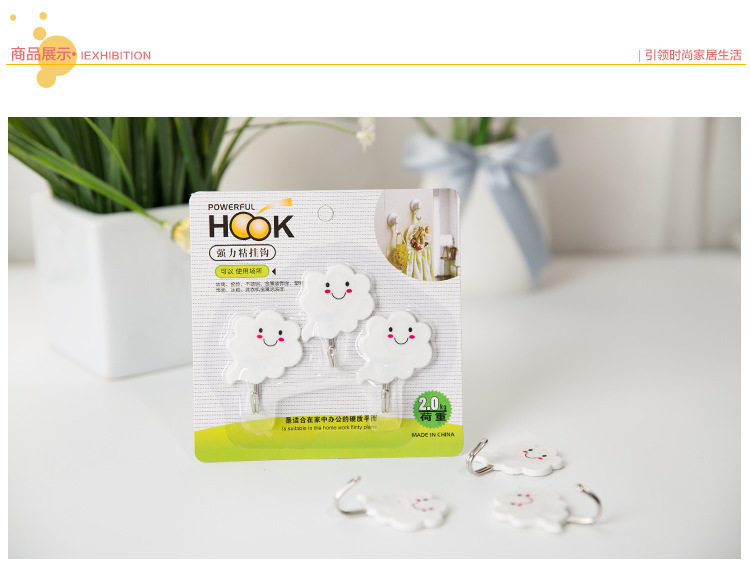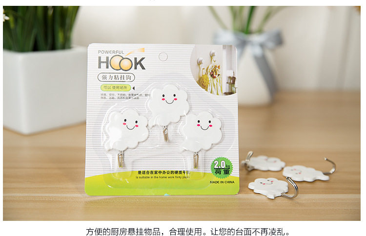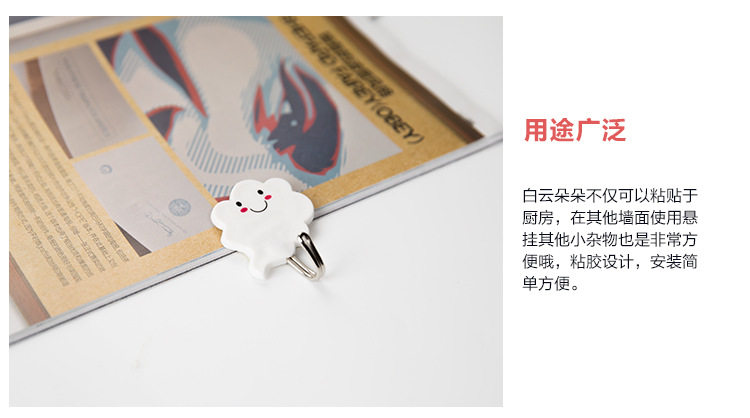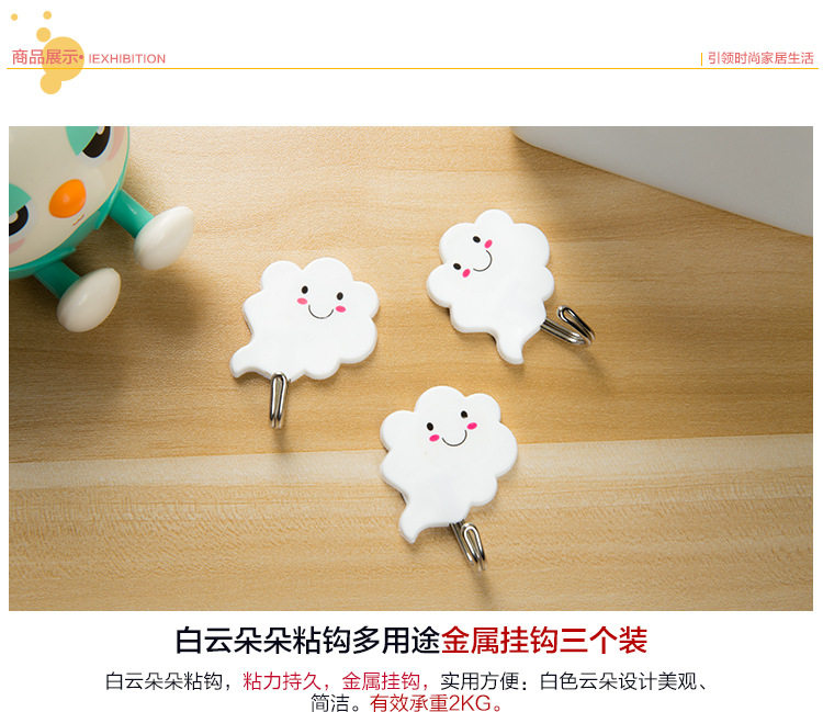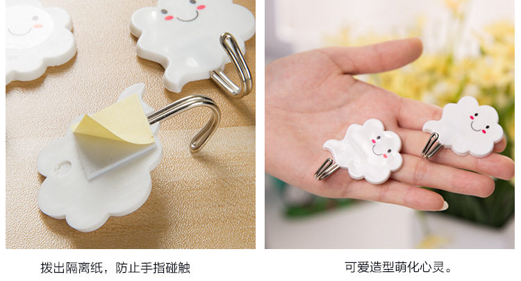 白云朵朵创意强力无痕壁挂粘钩 门后粘胶免钉衣服挂钩