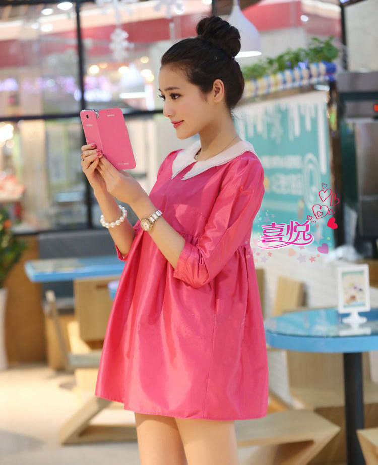 孕妇春装韩版上衣春夏装韩国时尚红色宽松春季长袖连衣裙