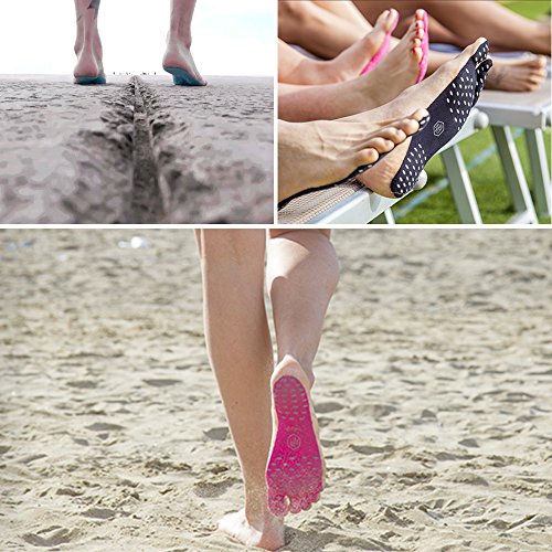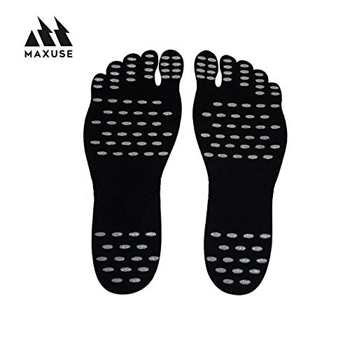 Adhesive Foot Pads Beach Insoles Flexible Feet Protection For Exercise Beach Sand Pool Feet Non Slip Yoga Socks waterproof Invisible Shoes (L, BLACK)