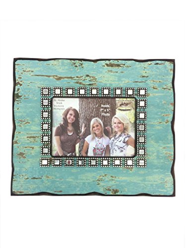 -. Feature : Distressed Wooden Frame / Turquoise paint / Rhinestone studs align picture window