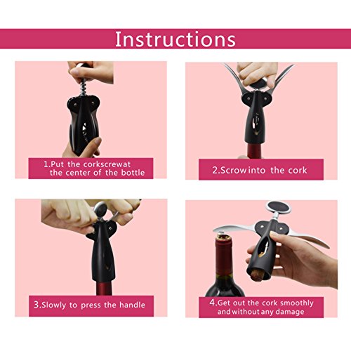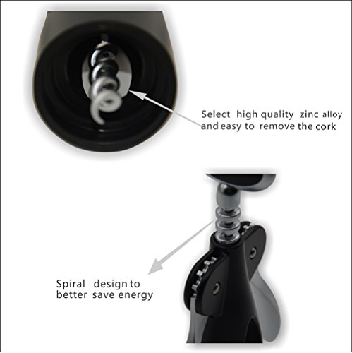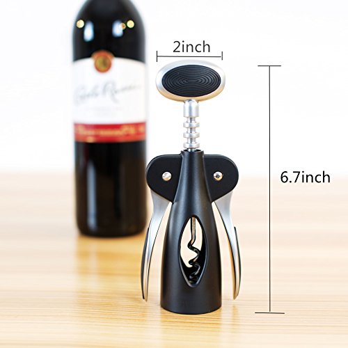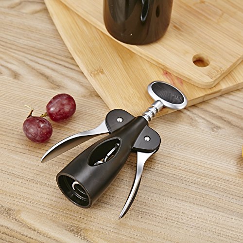- ★ MODERN LOOK AND CONVENIENT - Combining function and style, this sturdy wine bottle opener feels substantial in the hand and looks elegant on the table. You can find it foolproof and efficient, simply place the wine corkscrew opener over the bottle, twist the handle to insert the auger into the cork, and watch the opener's wings rise. Then press the wings down to extract the cork.
