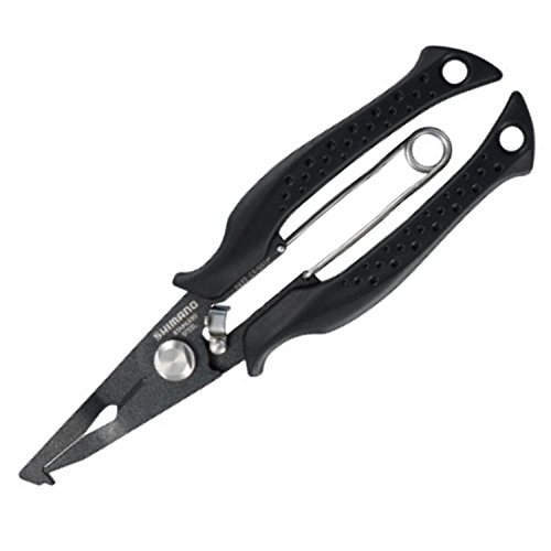-. Feature : カラー:ブラック / サイズ(mm):185×50×16 / 素材/ブレード:ステンレス / サビに強いフッ素加工済ステンレス製 / バーサタイルリングオープナー:#5~#11のスプリットリングに対応 / 先曲りで作業がしやすい / PEライン対応。ギザ刃採用ラインカッター / 片手で開閉可能なロック部 / 握りやすさを追求したハンドル形状・素材(ソフト) / エンドロープ・ランヤード取付穴