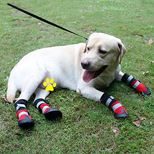 -. Title : UHeng 4PCS Large Dog Boots Waterproof Reflective Velcro Rugged Anti-Slip Sole Shoes