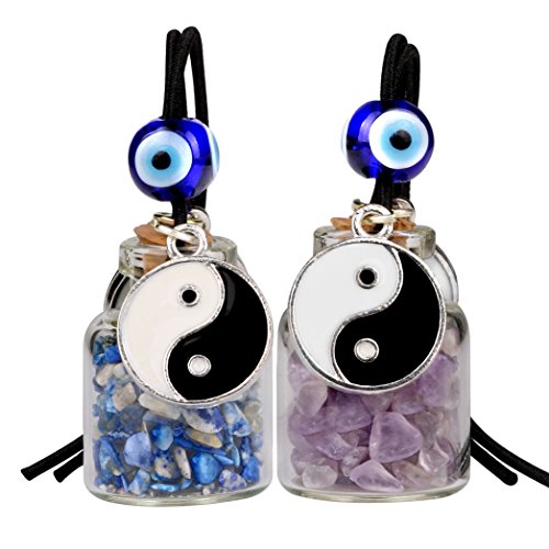 Yin Yang Balance Small Car Charms or Home Decor Gem Bottles Amethyst and Lapis Lazuli Protection Amulets