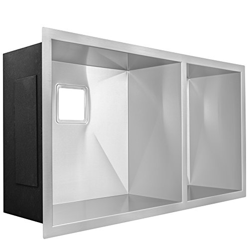 Size: 32" W x 16" L x 9" H | 18 gauge | 304 grade | Zero radius corners | Easy installation | Hardware included | Resistant to dents and scratches | Suitable for all countertops