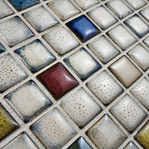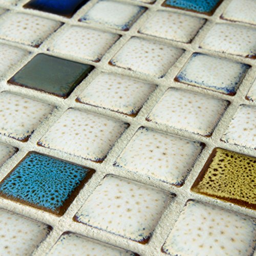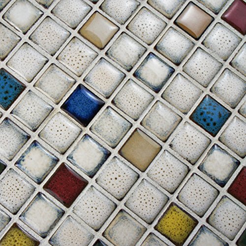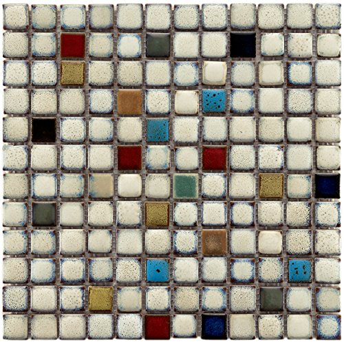 SomerTile FSDESQCS Essentia Square Cascade Porcelain Mosaic Wall Tile, 12" x 12", White/Brown/Blue/Beige/Yellow/Red/Green/Black