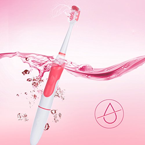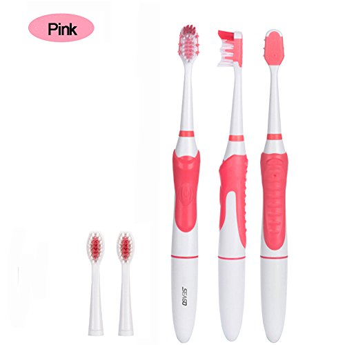 Travel Electric Toothbrush with 2 Soft-bristle Electric Toothbrush Replacement Brush Heads Oral Health Care Battery-Operated Toothbrush for Adult Youth Teens - Pink