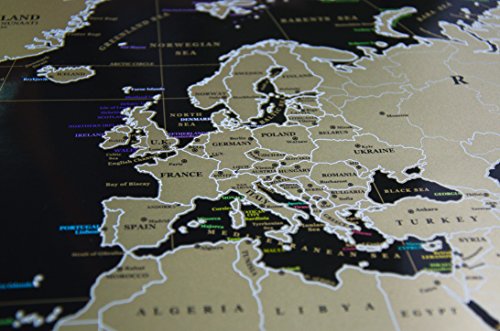 A GREAT REMINDER: Our black stylish world travel map with the gold coating is the best way to remember the good times and adventures abroad. Just use a coin or our guitar pick to remove the gold scratch coating and reveal the countries you have been to. It's a great learning tool for kids as well