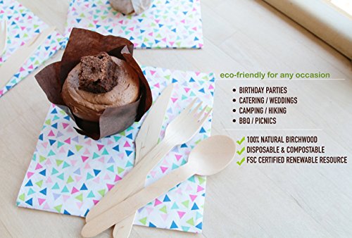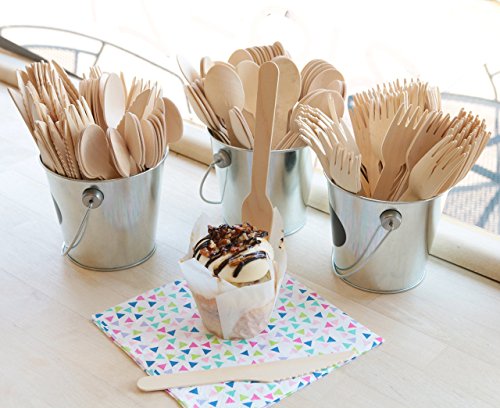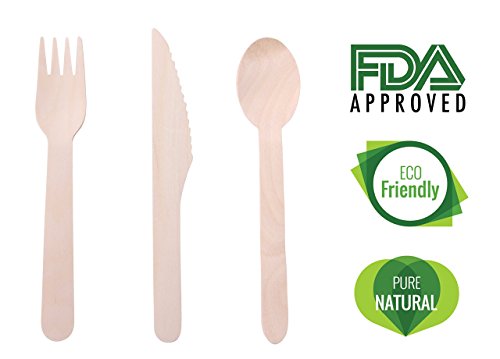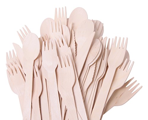 Happy Planet Now Disposable Wooden Cutlery Bulk | 250 pieces, 100 Spoons, 100 Forks, 50 Knives | Camping Birthdays Beach BBQ Weddings Parties | 6.25in Eco-Friendly Bamboo Cutlery