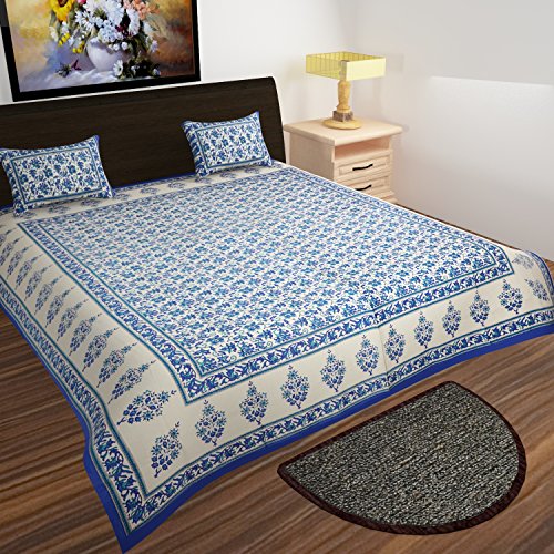 Traditional Mafia rses7032 Mughal Collection 100% Pure Cotton Printed Double Bedsheet With 2 Pillow Covers, King, Blue