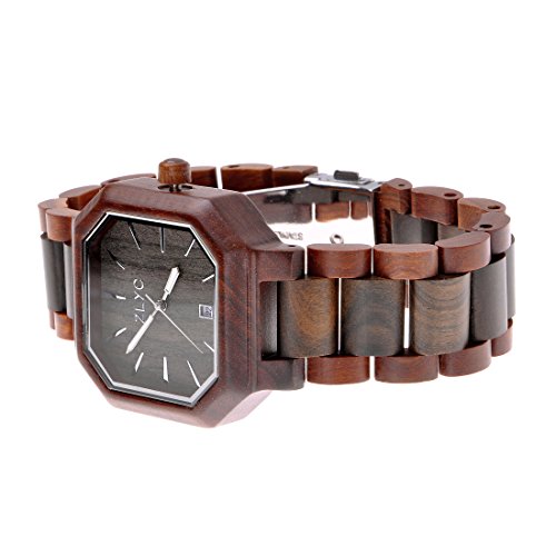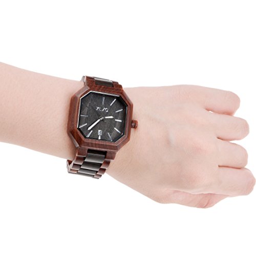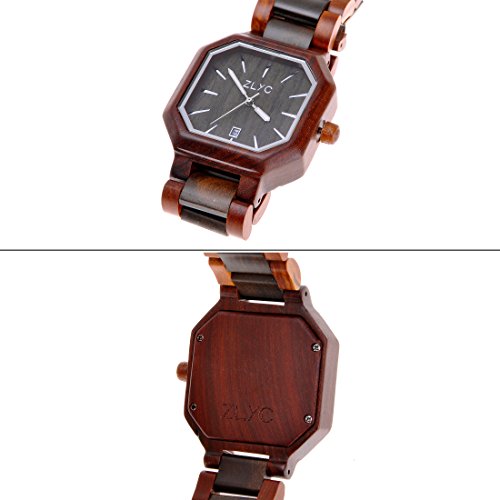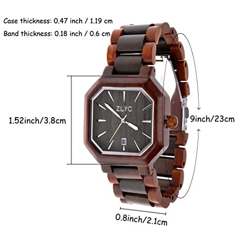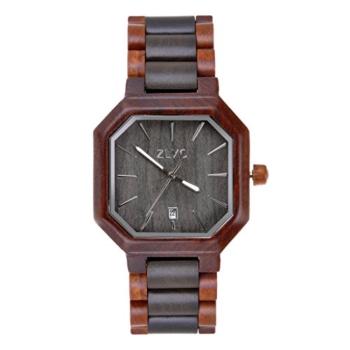 ZLYC Men Handmade retro Classic Quartz Wooden wrist watch with Calendar