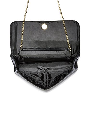 Product DescriptionA flirty and versatile design with a sleek, polished chain strap make this faux-leather clutch the ultimate travel essential. Flap top. Snap-button closure.0