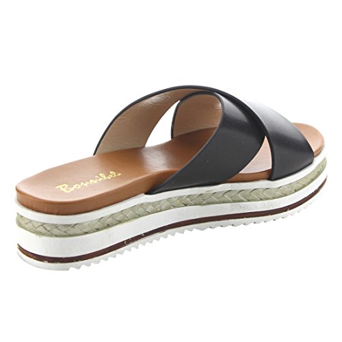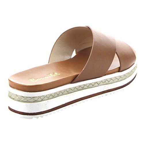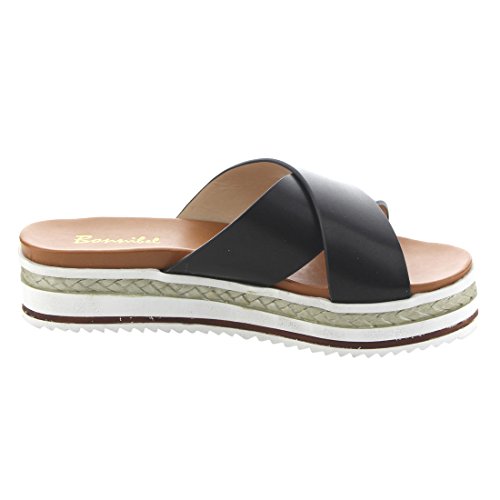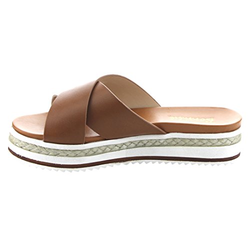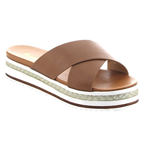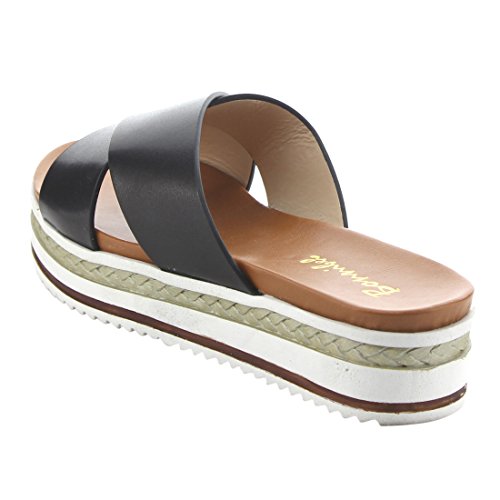 BONNIBEL FJ95 Women's Basic Platform Wedge Heel Criss Cross Strap Slides Sandals