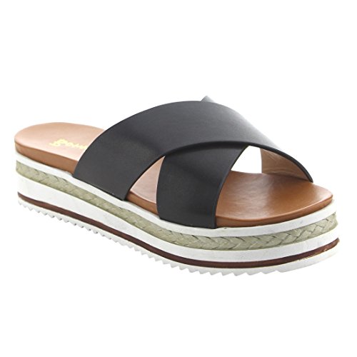 Product DescriptionGet back to basics in these women's basic platform wedge heel criss cross strap slides sandals.Designed with slip on,lug sole,open-toe silhouette.0