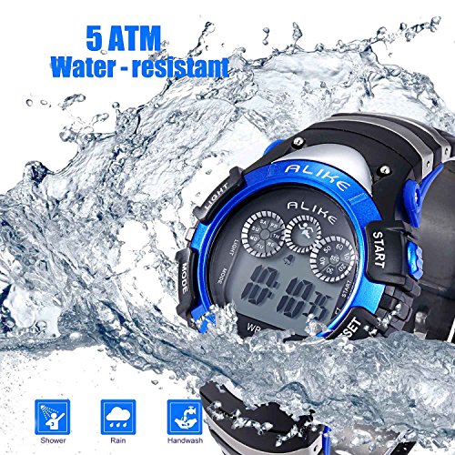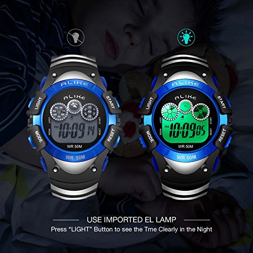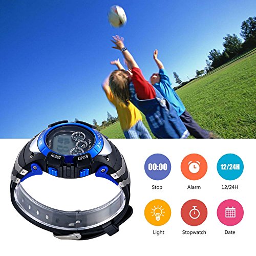 WATERPROOF: the blue cool LED fashion waterproof wristwatch with 50 M water resist, support to swim and bathe underwater. Please DONOT press any buttons underwater and keep the blue kids watch away from steam and hot water.