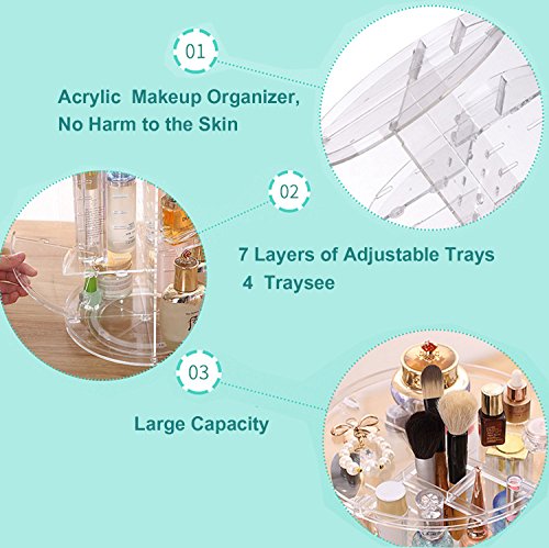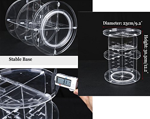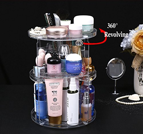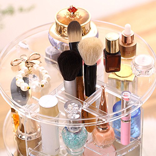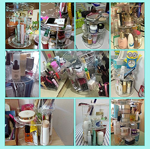 360° ROTATION ORGANIZER -- With its steady 360 degree rotating base, you can instantly access your cosmetics and get whatever you need by only rotating the organizer. Perfectly organizes and stores your cosmetics; enables easy access to all of your makeup and products.