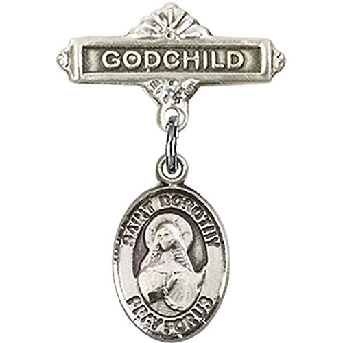 -. Title : Sterling Silver Baby Badge with St. Dorothy Charm and Godchild Badge Pin 1 X 5/8 inches