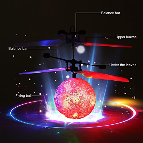 ☆ Newest version: It's like Harry Potter's golden snitch and will fly away from your hand when you try to grab it.Because it adopts advanced led infrared sensor hover technology to make it motion-sensitive so it detects nearby objects and is programmed moves away from them.