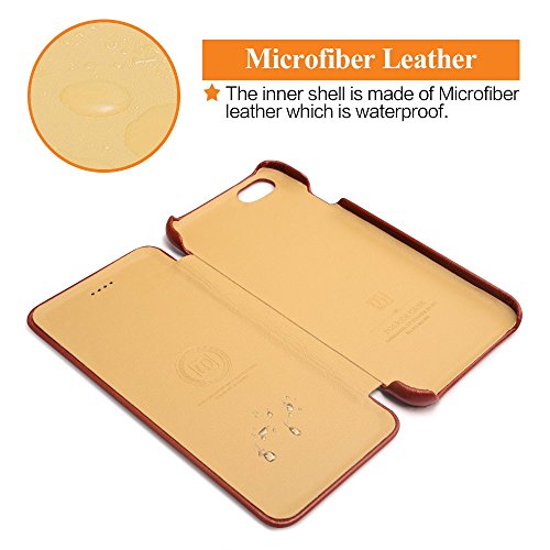 iPhone 6 leather case:Pure handmade of First Layer Leather, full premium leather design and hand feeling is more top-grade. Designed with a good texture of outer layer & sleek micro fiber leather lining which is anti-dirt and waterproof. Gently contact the surface of your device, fits your iPhone like a glove
