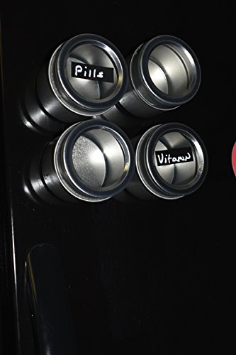 - NON-SLIP MAGNETIC BACKING - Set of 12 magnetic units and Chalkboard label stickers. Each tin measures 2.5-Inch diameter x 2-Inch height, 3-ounce, With convenient see-through lid with magnetic backing
