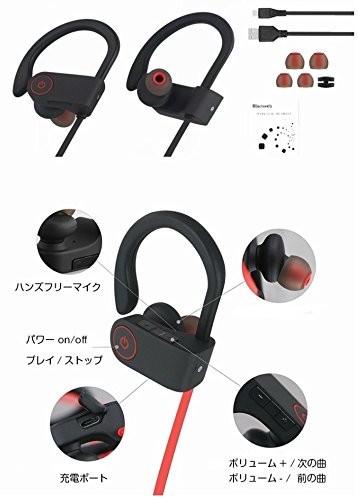 -. Feature : 防水仕様IPX7 / 柔らかいウレタンイヤーパッド / カラー : ブラック、レッド