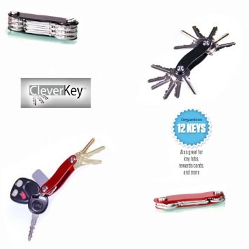 The as seen on TV clever key is the perfect solution to get rid of your bulky keys. The secret is the clever key's unique design that holds up to 12 keys, folding them into each other to maximize space. Made from aircraft grade aluminum, it is tough and durable and doesn't scratch. With its compact ergonomic design you can fit your keys anywhere. It is fully customizable and can hold key fobs, USB thumb drives, Rewards cards and more!