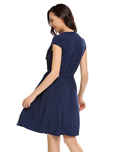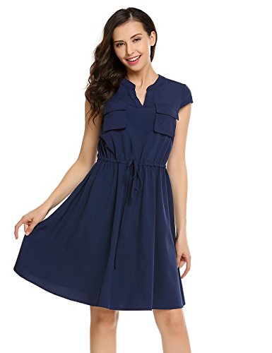 COSBEAUTY Women's Casual Cap Sleeve Drawstring V Neck T Shirt Dress with Pockets