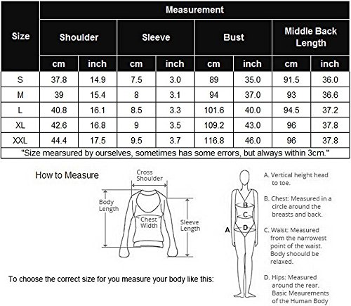 Size: There are 5 sizes (S, M, L, XL, XXL) available for the following listing. please allow 1-2cm differs due to manual measurement, thanks (All measurement in cm and please note 1cm=0.3937inch)
