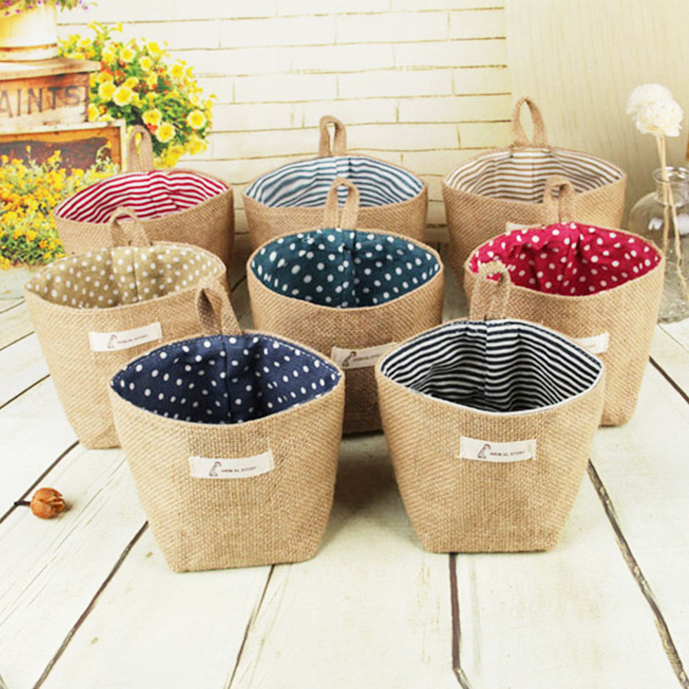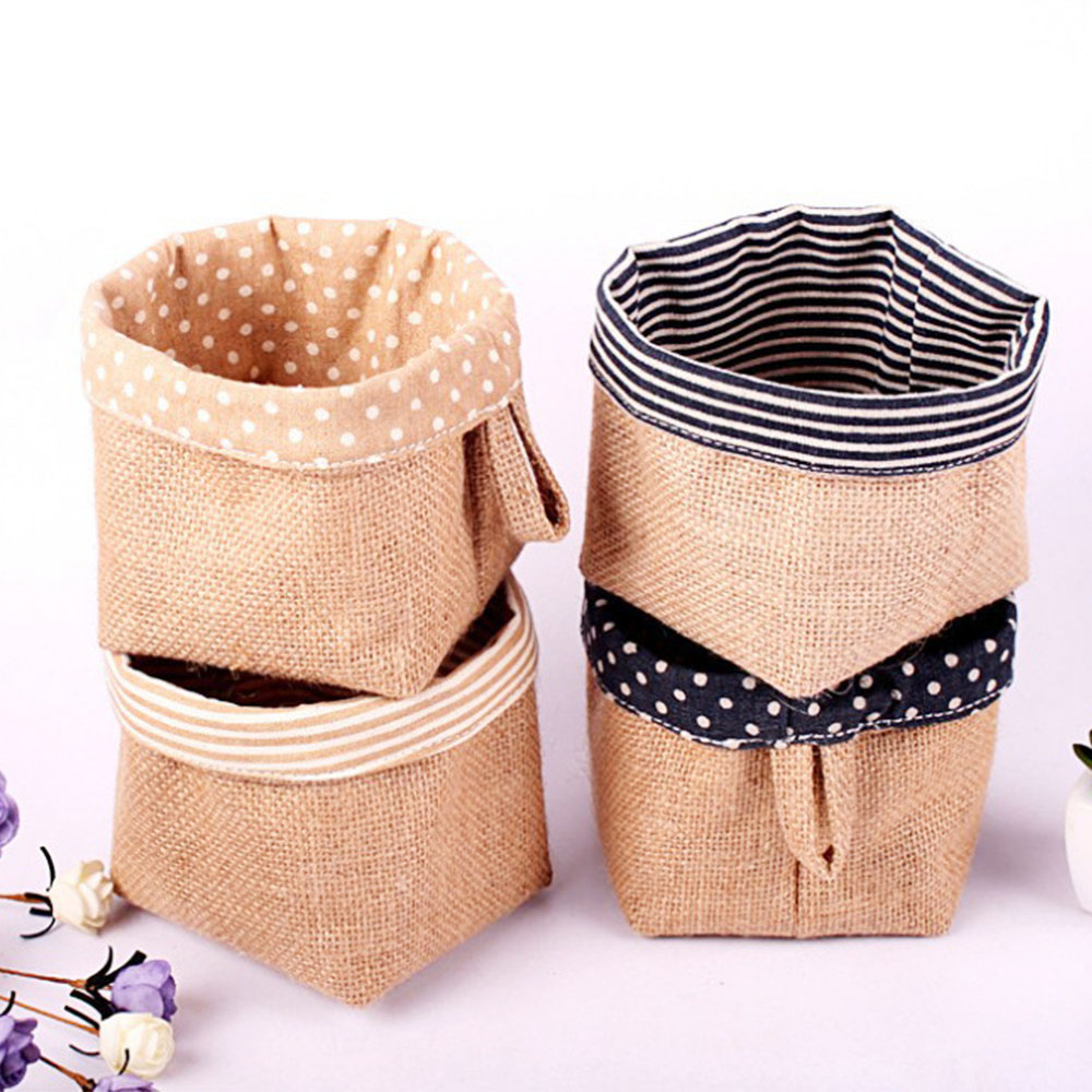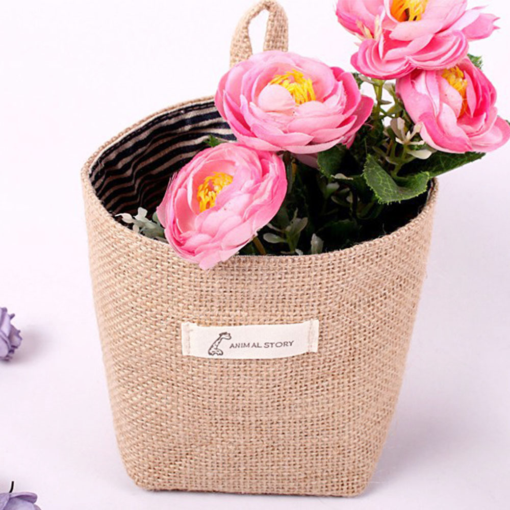 Natural Home garden decoration wedding flower pots burlap sacks/ jute bags /waterproof linen Desk basket ,Color and Pattern send by random