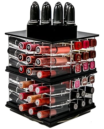 - EASY ACCESS - Spins 360 degrees featuring 4 sides with slots to hold 52 of your lipsticks and lip glosses