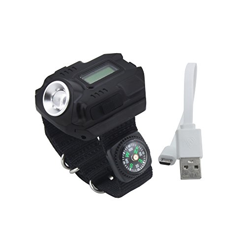 Soondar® Super Bright Wrist LED Light R5 Rechargeable Waterproof LED Flashlight Wristlight Watch with Compass, Best for Running Mountain Climbing Camping Survival Hiking Hunting Patrol
